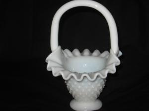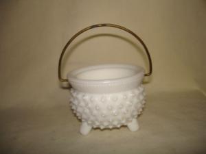 VINTAGE FENTON HOBNAIL WHITE MILK GLASS BASKET!     Completed    $5.5