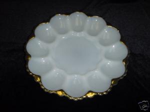 WHITE MILK GLASS GOLD TRIM EGG PLATE     Completed    $5.5