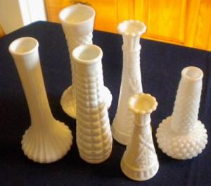 Lot Of 6 Milk Glass Bud Vases All Different NICE     Completed    $5.5