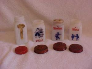 4 VINTAGE MILK-WHITE GLASS SPICE SHAKERS     Completed    $5.5