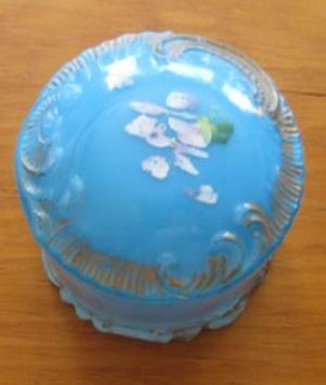 Vintage Blue milk glass Powder Jar- 3 1/4" dia.     Completed    $5.5