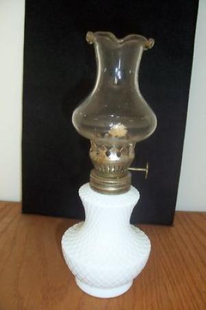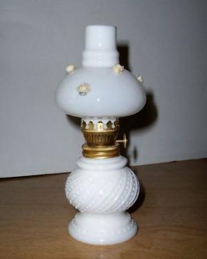 Minature Kerosene Oil Lamp -WHITE-MILK GLASS-     Completed    $5.5