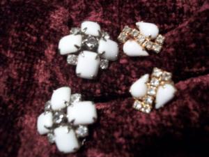 VINTAGE WHITE MILK GLASS & RHINESTONE FLOWER PIN     Completed    $5.5