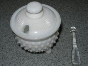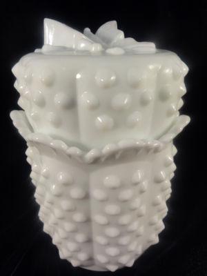 HOBNAIL CANDY DISH WITH LID MILK GLASS     Completed    $5.5