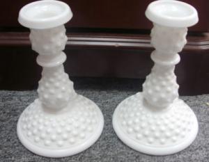 Fenton Milk Glass Hobnail Pr Candlestick Holders     Completed    $5.5