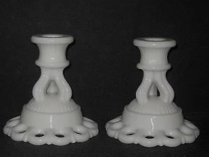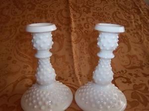 Hobnail Milk Glass Vintage Candlestick Pr     Completed    $5.5