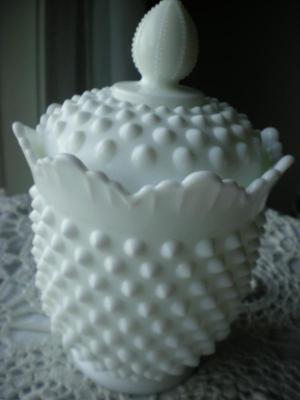 Vintage Hobnail Milk Glass Covered Jar     Completed    $5.13