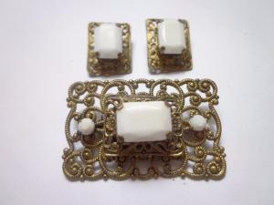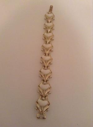 Vintage Milk Glass Gold Tone Bracelet by Cora     Completed    $5.13