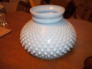 OLD MILK GLASS HOBNAIL LAMP SHADE-POWDER BLUE     Completed    $5