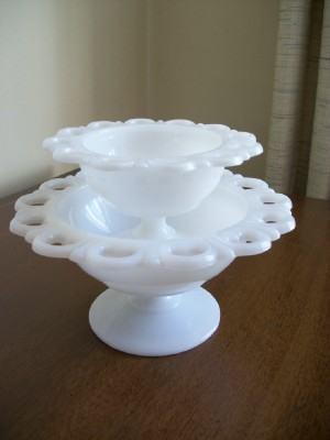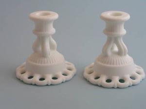 SET OF MILK GLASS CANDLE HOLDERS     Completed    $5