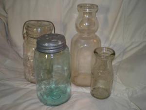 VINTAGE MASON JARS (2) & MILK BOTTLES (2)     Completed    $5