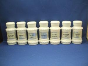 Milk Glass Spice Jar Set of 7 Foil Labels     Completed    $5