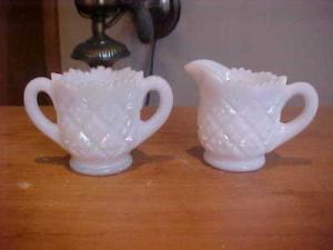 WHITE MILK GLASS CREAMER SUGAR DIAMOND QUILT     Completed    $5