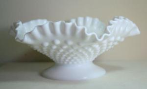 Milk Glass Hobnail Ruffled Pedestal Base Bowl     Completed    $5