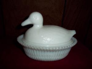 PIN TAIL DUCK COVERED DISH - MILK GLASS     Completed    $5