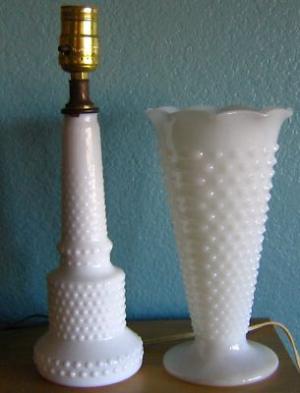 Hobnail White Milk Glass Vase and Lamp     Completed    $5