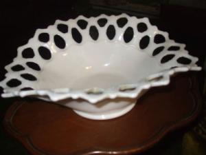 VINTAGE LACED MILK GLASS BOWL/BASKET     Completed    $5