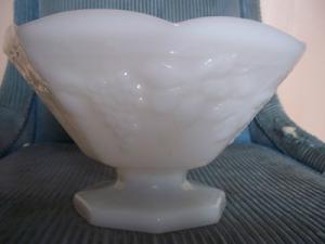 White Milk Glass Fruit Bowl, Grape Design     Completed    $5