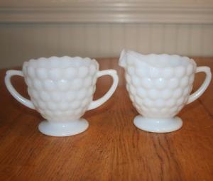 White Milk Glass Bubble Sugar and Creamer Set     Completed    $5