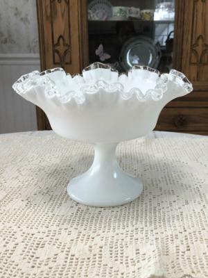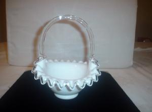 Silver Crest Milk Glass Basket Clear Handle     Completed    $5