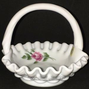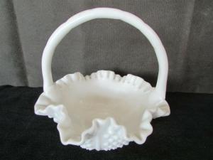 White Milk Glass Fenton Hob Nail Basket D-41     Completed    $5