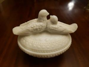 White Milk Glass Candy Dish with Cover D-63     Completed    $5