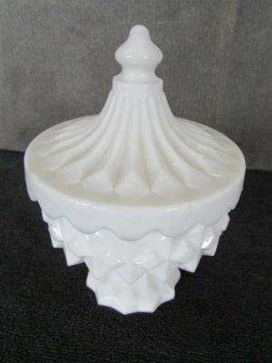 White Milk Glass Covered Candy Dish D-49     Completed    $5