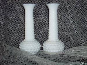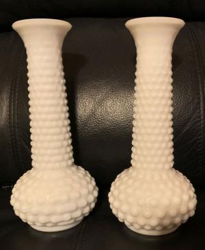 E O Brody Milk Glass Vases Opague Hobnail     Completed    $5