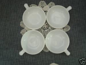 MILK GLASS HANDLED BOWLS SET OF FOUR     Completed    $4.99