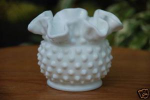 Fenton Hobnail Milk Glass Ruffled Vase     Completed    $4.99