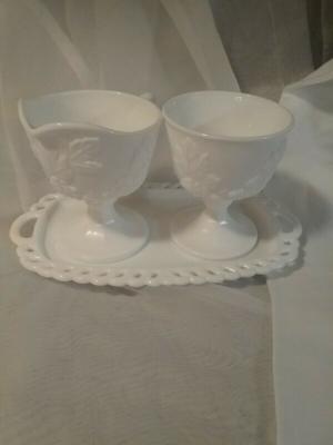 3 Pcs Milk Glass Sugar, Creamer And Tray Set     Completed    $5
