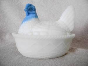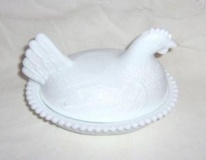 MILK GLASS DISH *HEN ON NEST* WITH COVER     Completed    $4.99