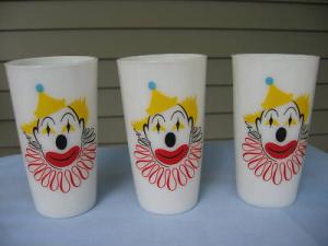 Milk Glass Hazel Atlas 3 Glasses with Clowns     Completed    $4.99