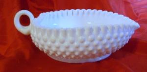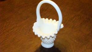 FENTON WHITE MILK GLASS HOBNAIL HANDLED BASKET     Completed    $4.99