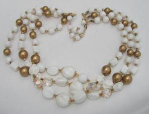 VINTAGE THREE STRANDED MILK GLASS NECKLACE JAPAN     Completed    $4.99