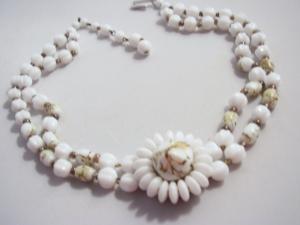 Germany Milk Glass Bead Floral Necklace 2 Strands     Completed    $4.99
