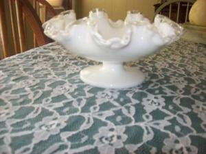Fenton Hobnail Ruffled Edge Milk Glass Bowl     Completed    $4.99