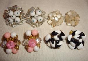 Vintage Lot Cluster Beads Earrings Milk Glass     Completed    $4.99