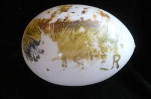LARGE ANTIQUE GLASS EASTER EGG MILK GLASS PAINTED     Completed    $4.99