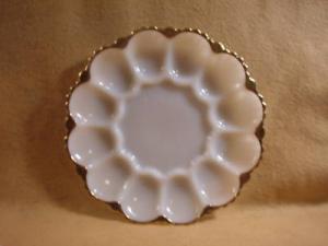 Milk Glass Deviled Egg Plate w/ Gold Rim     Completed    $4.99