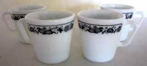 4 VINTAGE PYREX MILK GLASS "OLD TOWN BLUE" MUGS     Completed    $4.99