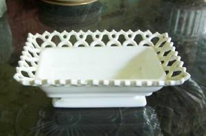 victorian lace edge milk glass dish 8" X 5" X 3"     Completed    $4.99