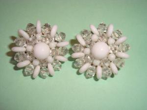 Vintage White Milk Glass Rhinestone Earrings     Completed    $4.99