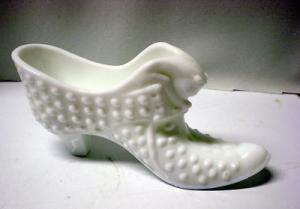 Fenton Hobnail Milk Glass Shoe w. Cat     Completed    $4.99