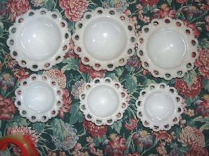 VINTAGE MILK GLASS LOT OF 6 LACE DISHES? #27     Completed    $4.99
