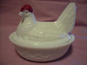 White Milk Glass Nesting Hen Dish Large     Completed    $4.99