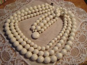 milk glass, jet faceted beaded necklace OLD 36"     Completed    $4.99