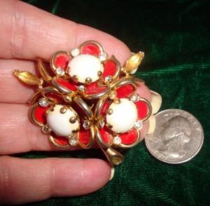 Vintage Milk Glass Rhinestones Brooch Pin     Completed    $4.99