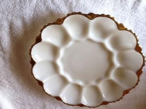 BEAUTIFUL ANCHOR HOCKING MILK GLASS EGG PLATE     Completed    $4.99