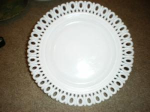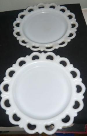 MILK GLASS OPEN LACE HEART EDGE 8" PLATES-2     Completed    $4.99